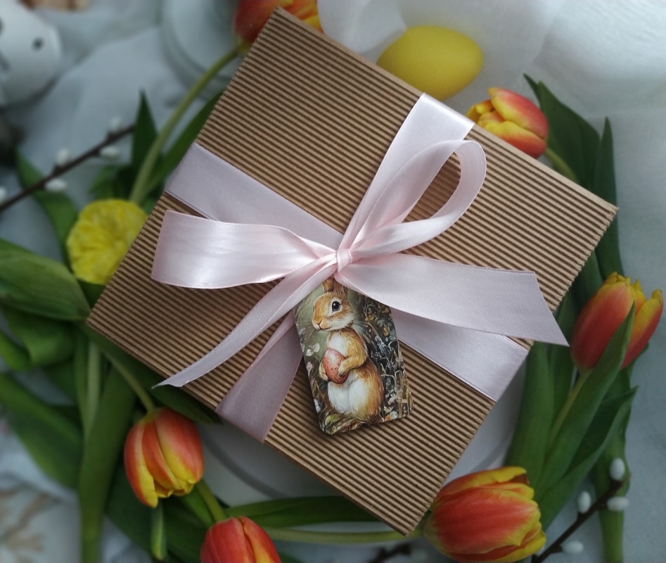 Świeca zapakowana jest w pudełko ze wstążką.