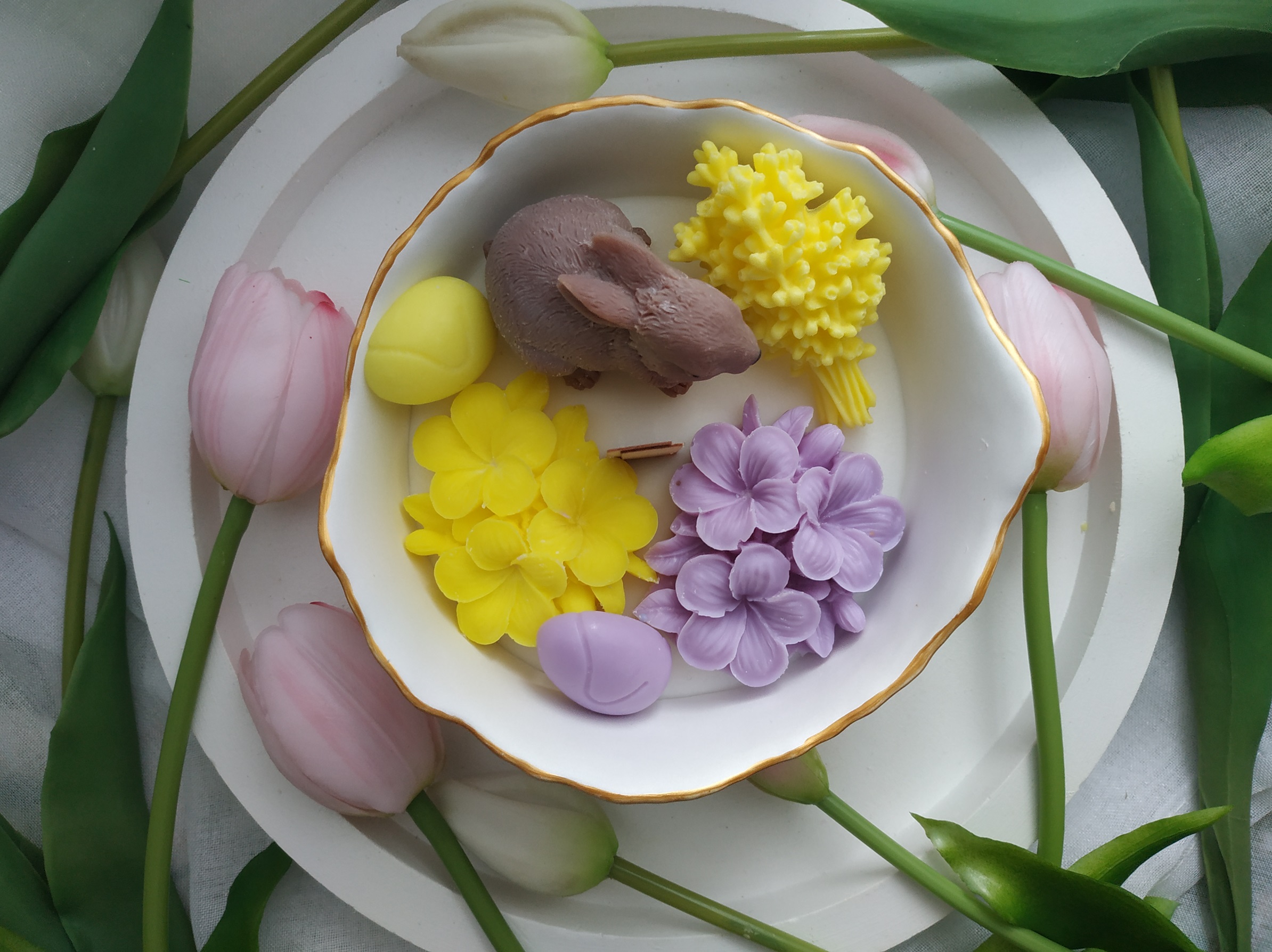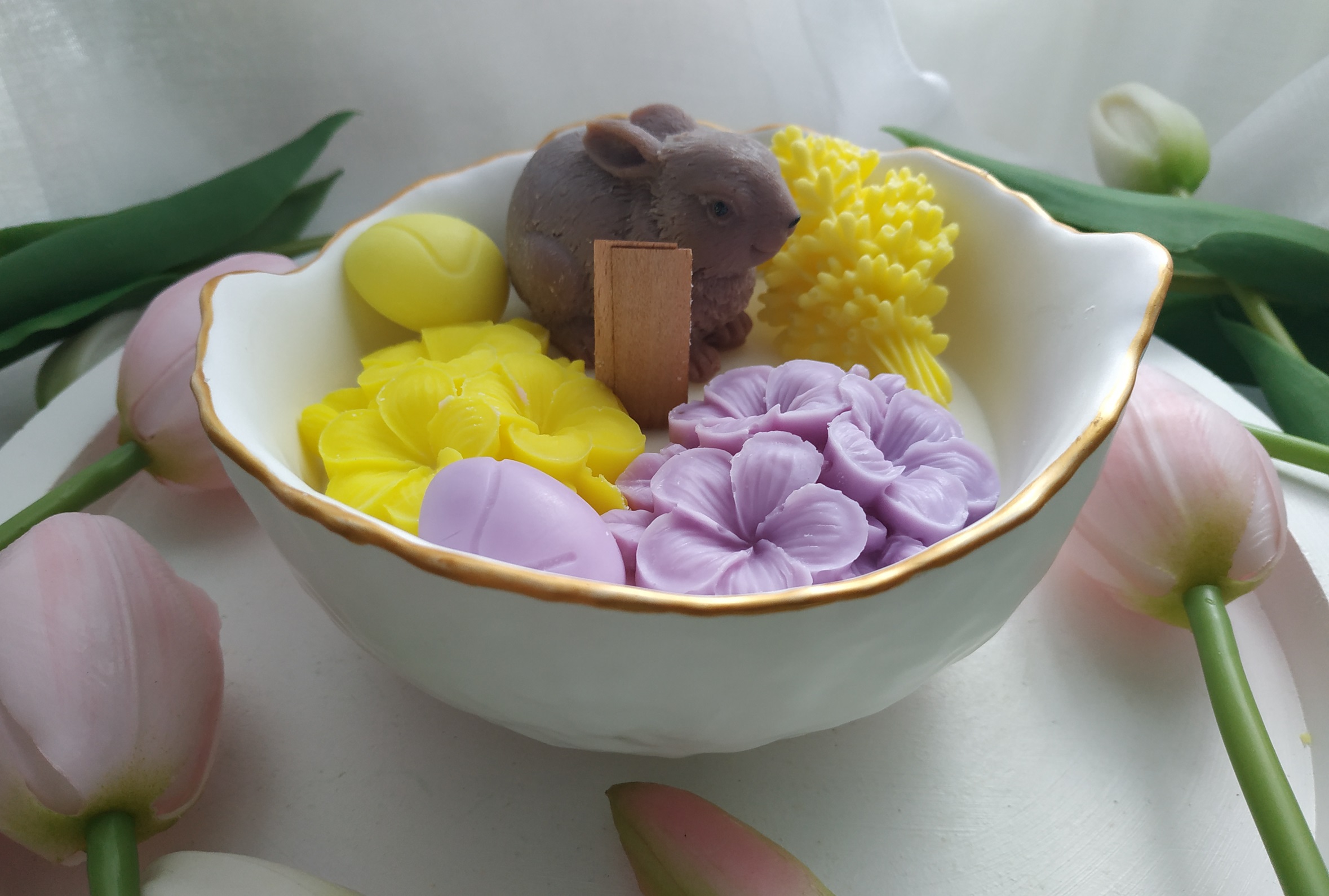 Świeca sojowa w pojemniku z gipsu ceramicznego o zapachu wiosennych kwiatów.