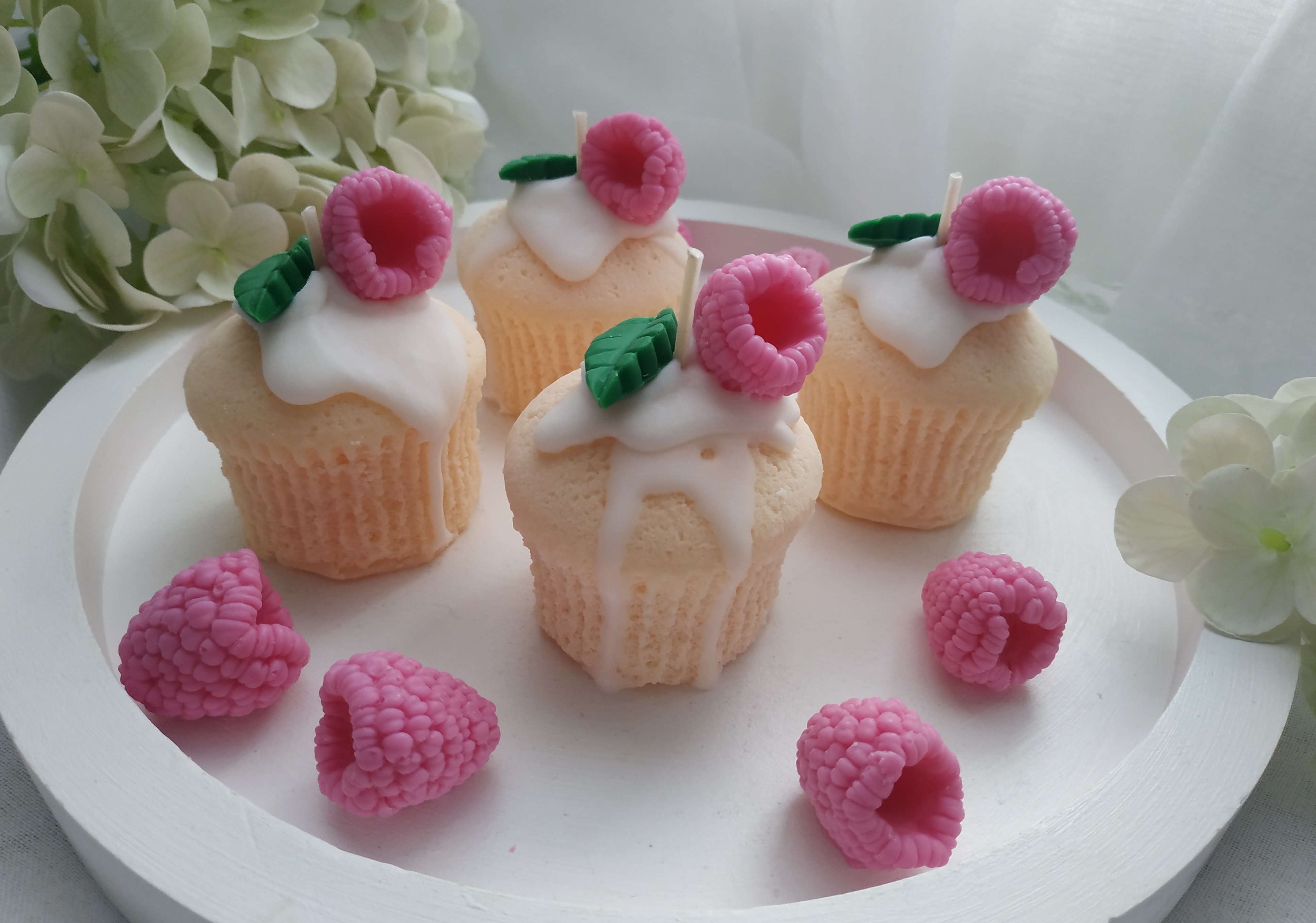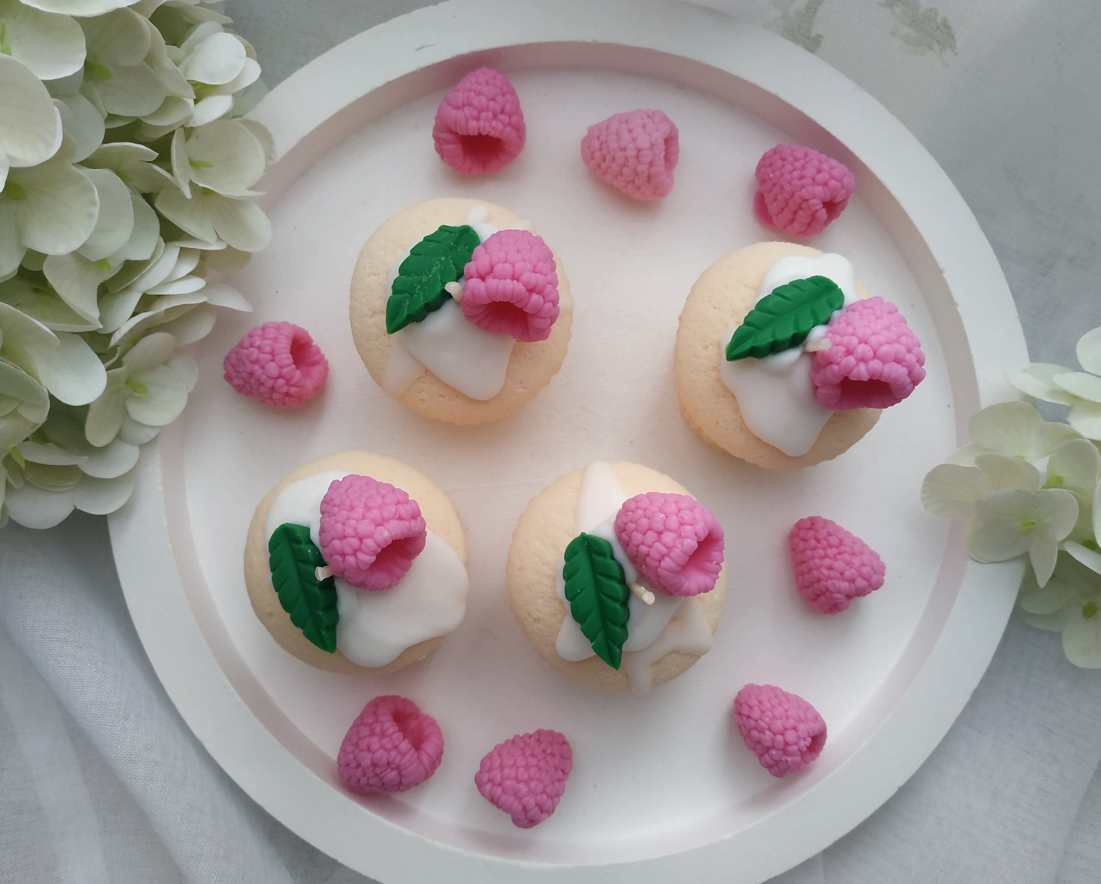 Zestaw czterech świec sojowych o zapachu maliny, żurawiny i białej czekolady.