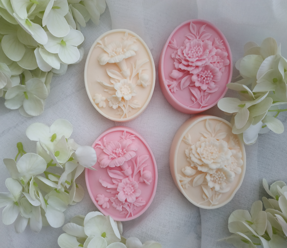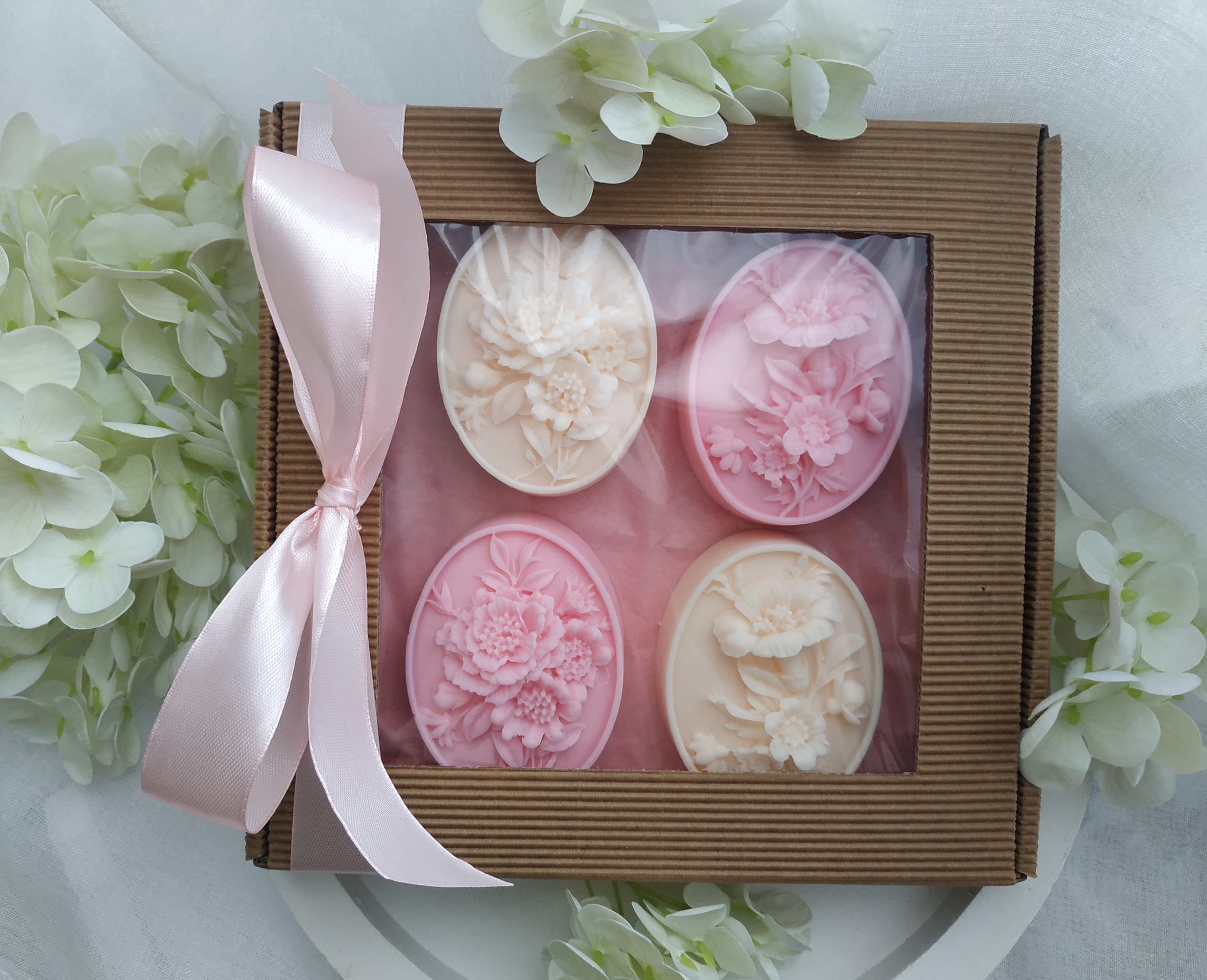 Mydełka glicerynowe dekoracyjne o zapachu róży i bzu, 4x65g