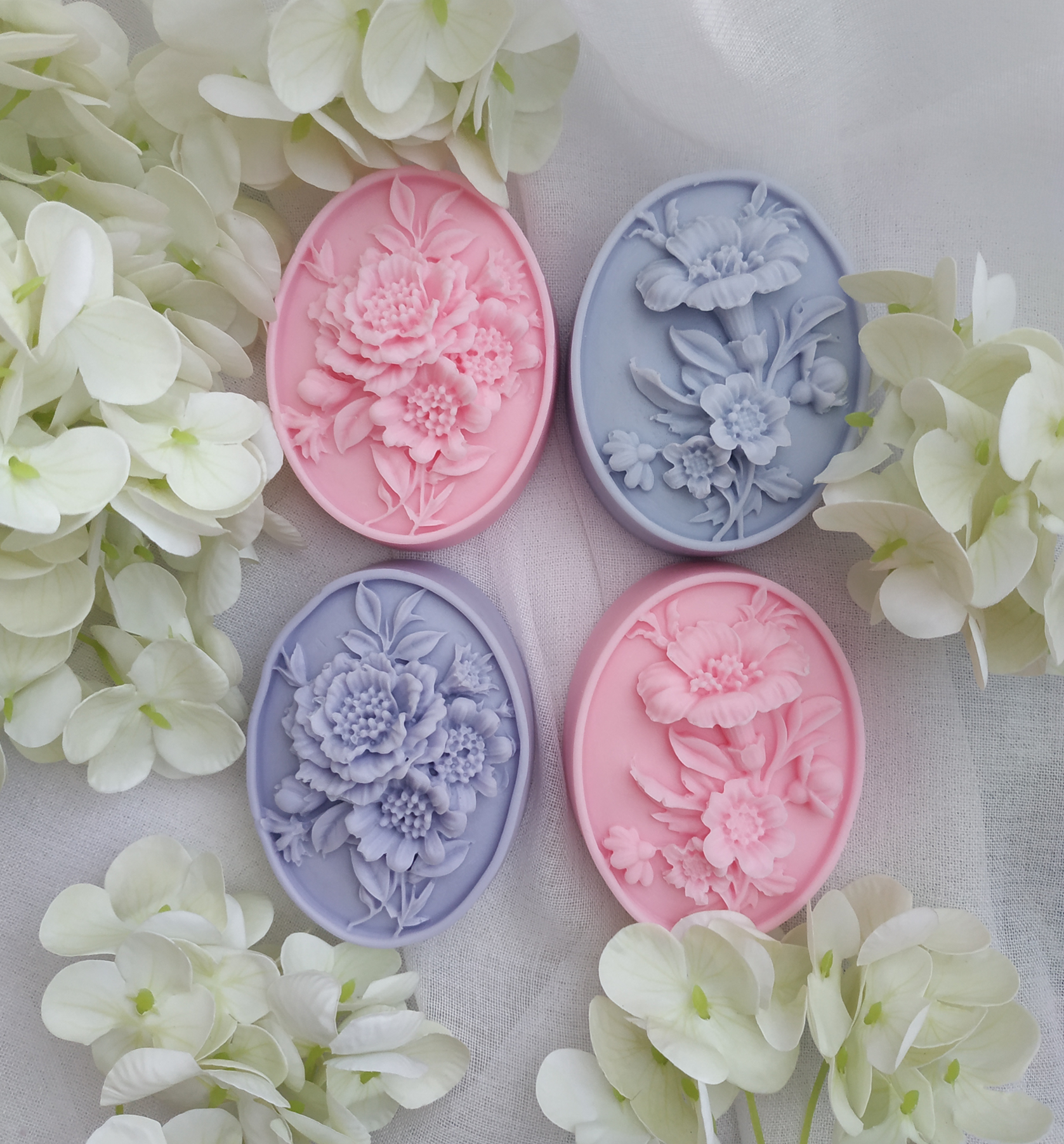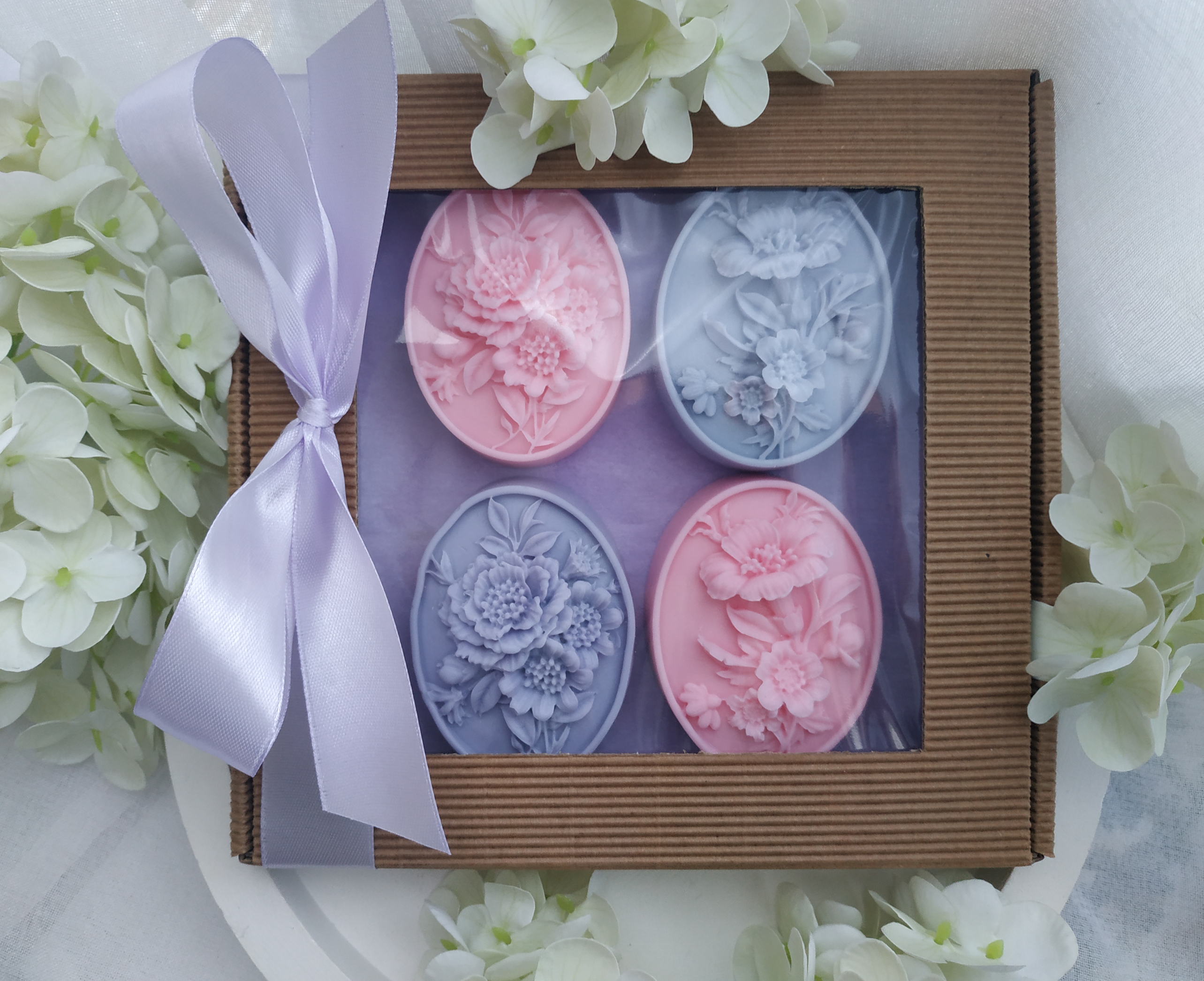 Mydełka glicerynowe dekoracyjne o zapachu lawendy i róży, 4x65g